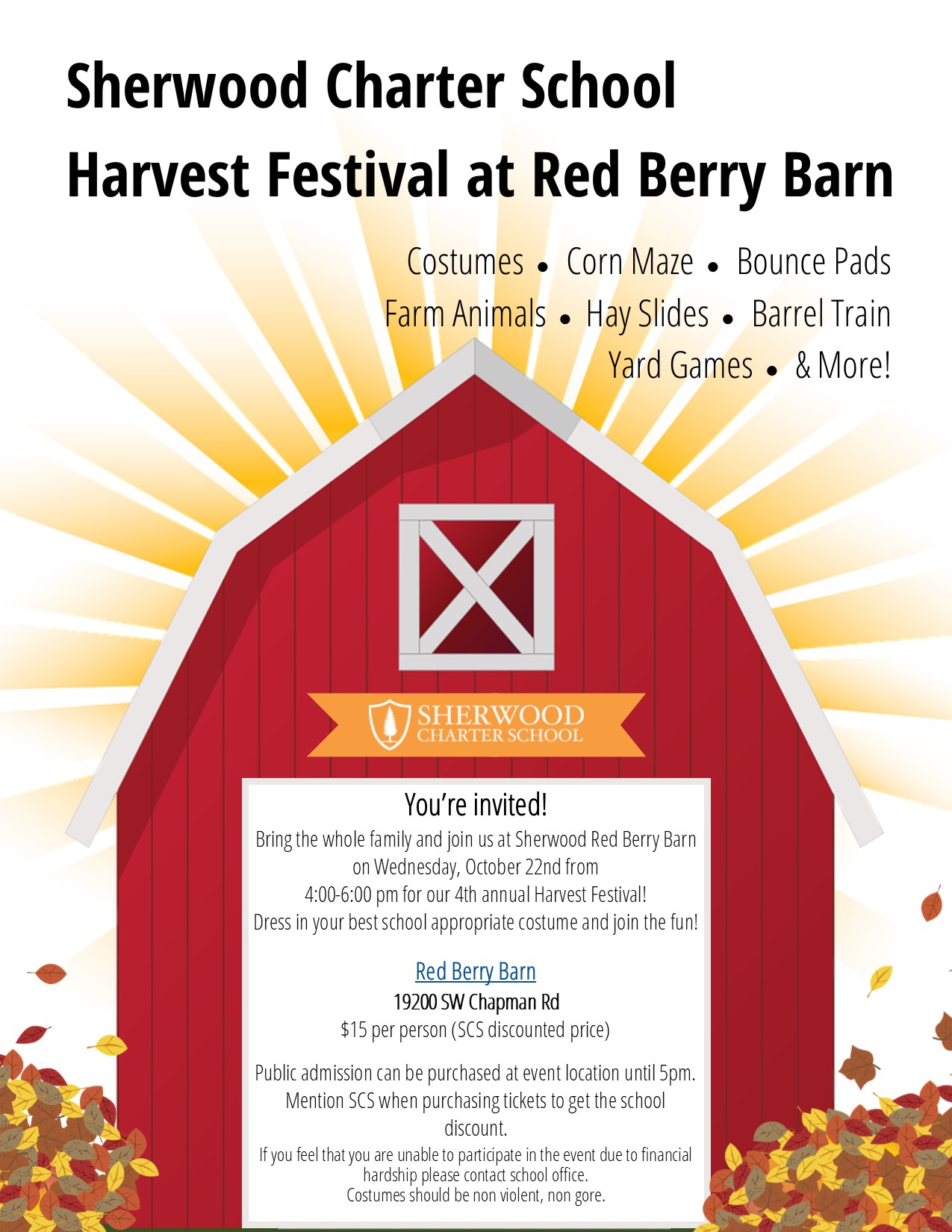 Harvest Festival- A Public Family Event- Wednesday, October 22, 2025 from 4:00 - 6:00 pm! We are excited to announce that this year we will be partnering with Sherwood Red...